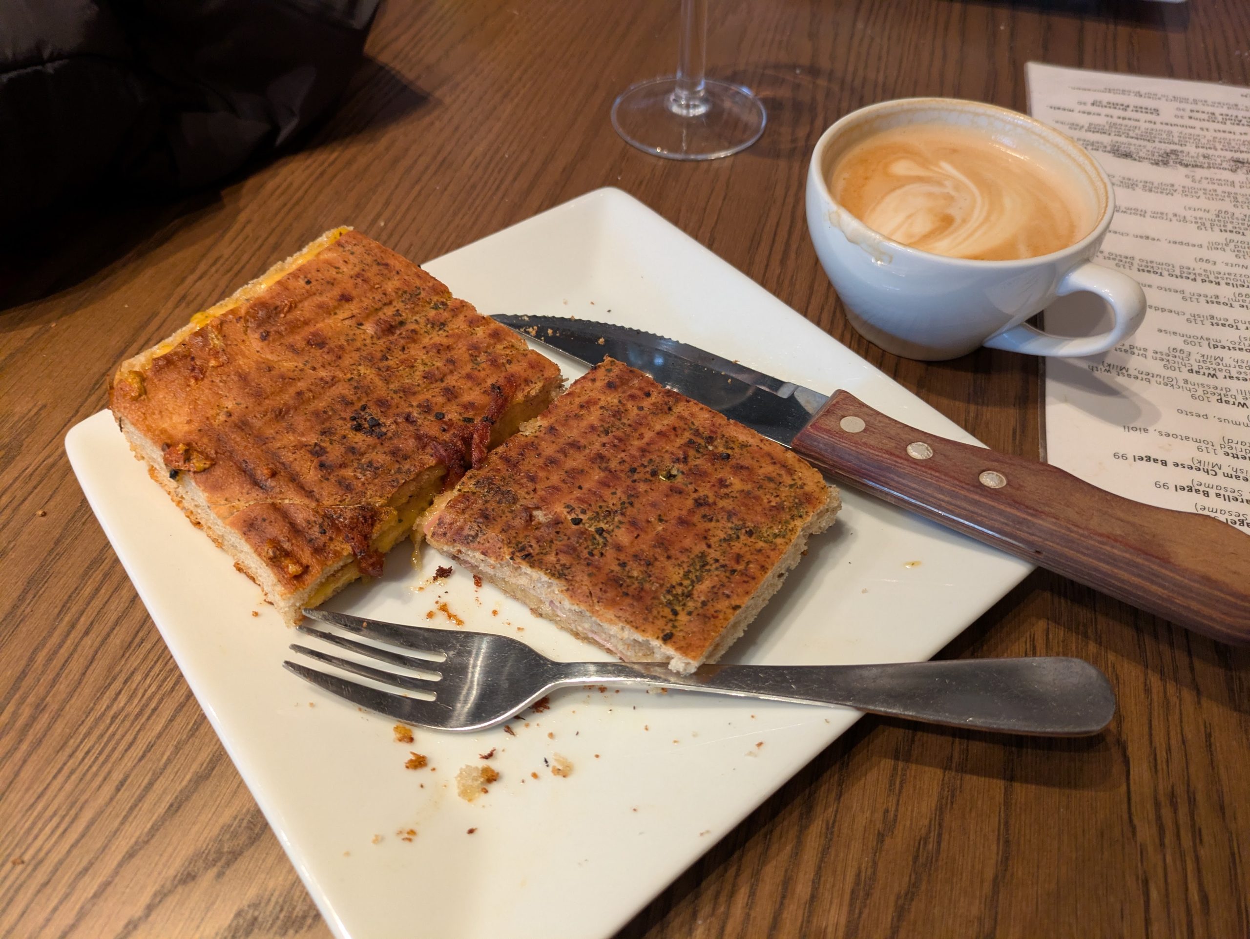 I had a plan for lunch but first we needed to get the Christmas shopping out of the way, before I was allowed a nice hot cup of coffee and a sandwich for lunch. My first choice for lunch was full with no free tables, so we ended up in the second choice, Cafe Racoon. It wasn’t a bad choice, the coffee was good and the toasted ham and cheese sandwich was both delicious and filling. We did a bit more shopping on the way back to the ship and then we were back on board clutching our parcels.